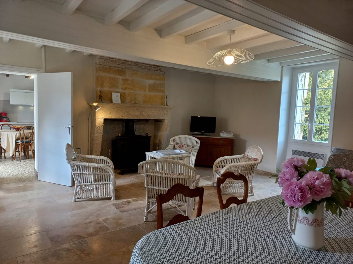 Gîte spacieux, situé au pied du village de Pujols, dans une maison girondine de caractère, mitoyenne à la résidence secondaire des propriétaires avec entrée indépendante.