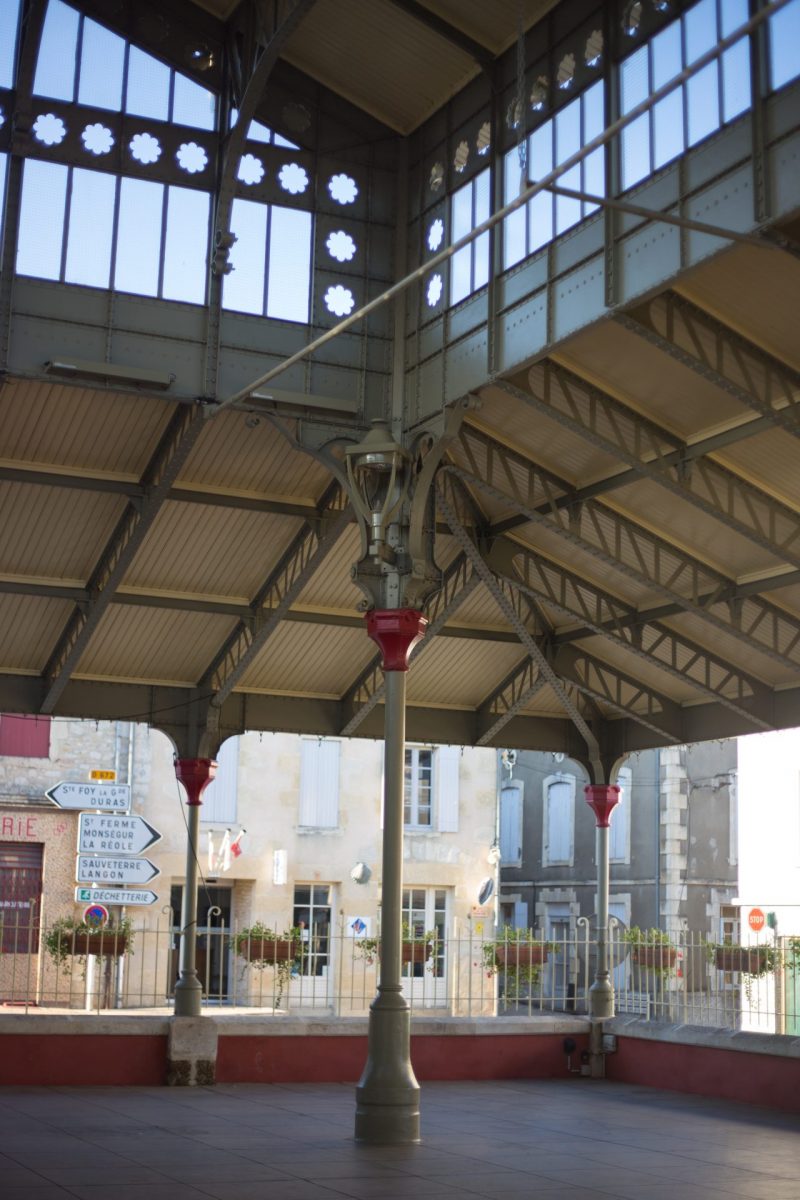 Depuis la fondation de la bastide de Pellegrue en 1274, plusieurs halles ont occupé la place centrale. En 1902, la municipalité a démoli l’ancienne halle en bois du XVIIIe siècle, caractérisée par ses piliers et sa toiture en tuiles. La halle actuelle de Pellegrue, construite en 1913 par des artisans locaux et les établissements Boyer frères de Talence, a été modernisée en 1914 avec l’ajout d’un sol bétonné. Cette construction a été entreprise pour accompagner l’essor du marché local. Elle joue aujourd’hui un rôle central pour la municipalité et les associations locales puisqu’elle accueille le marché du mercredi matin et de nombreuses manifestations : marché aux fleurs, concerts, marchés gourmands, etc.